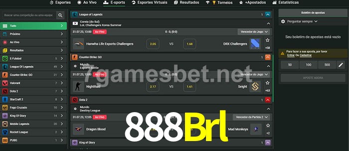 O 888Brl oferece uma grande seleção de opções de apostas em e-sports com probabilidades competitivas
